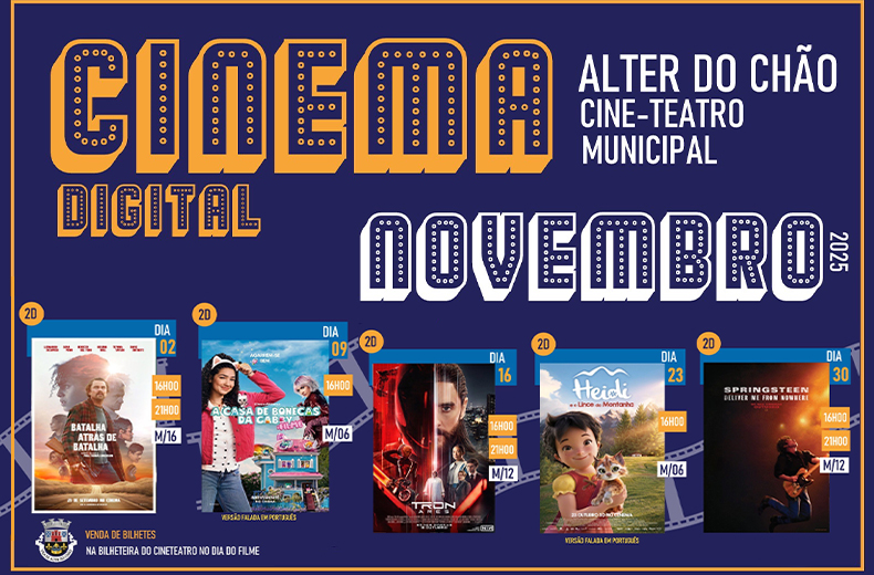 Última Atualização a 02 Novembro, 2025 CinemAlter Novembro 2025 Bilhetes:Adultos – 3€Crianças e jovens portadores de cartão estudante/jovem – 2€